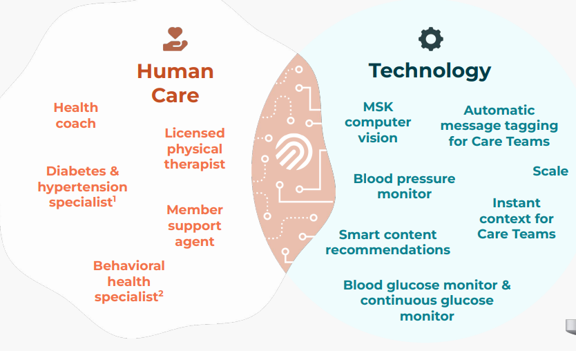Their platform integrates human care teams, real-world connected devices (e.g., scales, blood pressure monitors), and AI-powered tools like Meal Map and OmadaSpark (AI-driven nutrition education feature).