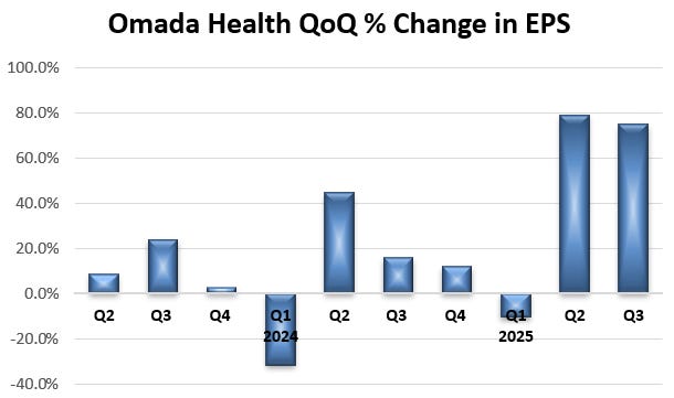 EPS increased from Q1 to Q2 2025 79%, and from Q2 to Q3 rose 75%.