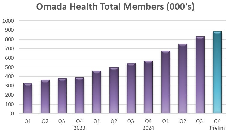 The preliminary Q4 results show Omada finished 2025 with 886k members.