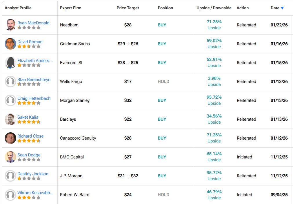 With a market cap hovering around $900M, it’s a founder-led small cap with strong potential to return above $30 in 2026.