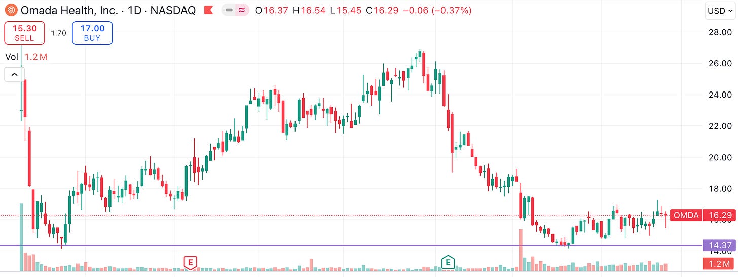 OMDA went public in mid-2025 and is currently trading at $16, down from recent highs of $28.