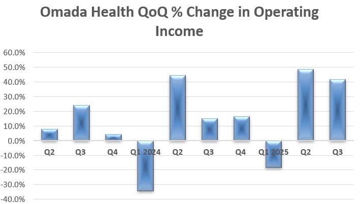 Omada is approaching an inflection point in operating income, likely in Q2 2026, with it rising 15% quarterly.